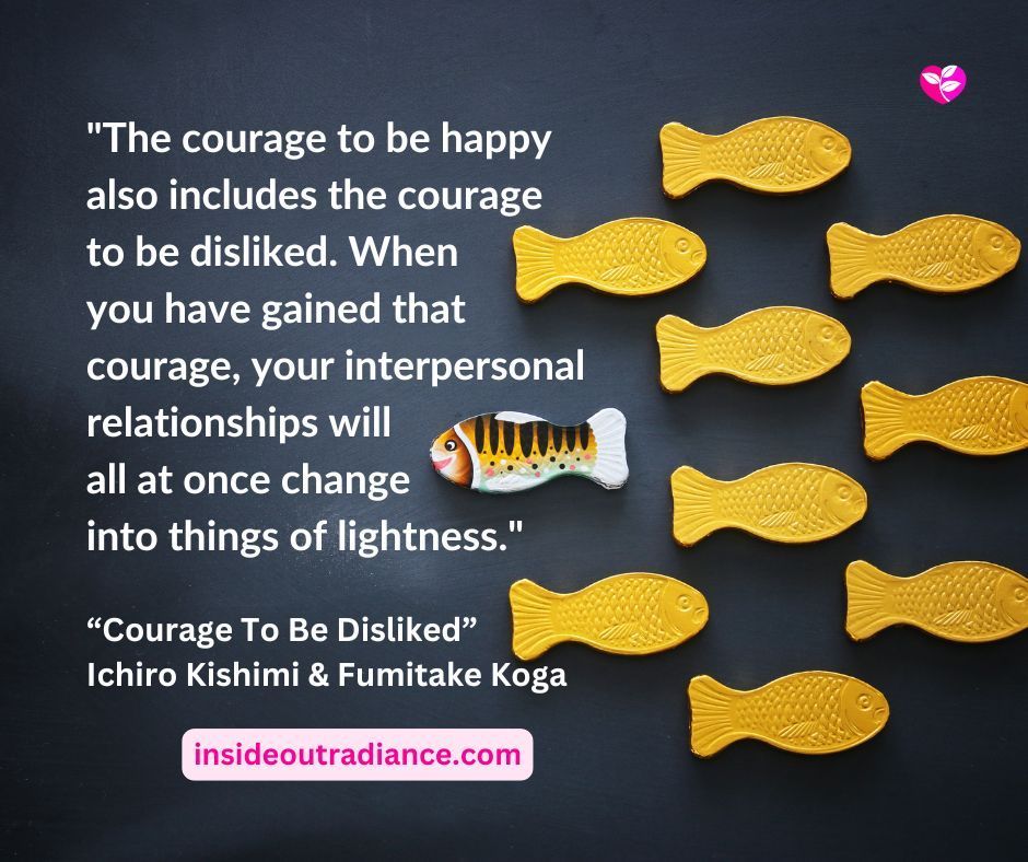 "The courage to be happy also includes the courage to be disliked. When you have gained that courage, your interpersonal relationships will all at once change into things of lightness."
